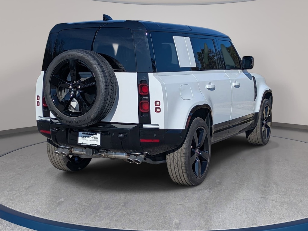 Clean CARFAX. Certified. Fuji White 2025 LAND ROVER Defender 110 X-Dynamic SE AWD 8-Speed Automatic V8 Supercharged 1-OWNER, CLEAN CARFAX, SERVICED HERE, OWNED BY DEALER, LEATHER, HEATED SEATS, PANORAMIC SUNROOF, NAVIGATION, 4-WHEEL DRIVE, SMART KEY W PUSH BUTTON START, DYNAMIC RADAR CRUISE CONTROL, LANE DEPARTURE ALERT W STEERING ASSIST, BLIND SPOT MONITOR W REAR CROSS TRAFFIC ALERT, APPLE CARPLAY & ANDROID AUTO, MEMORY SEAT, THREE-ZONE CLIMATE CONTROL, AIR QUALITY SENSOR, CABIN AIR PURIFICATION PLUS, CLEARSIGHT REAR VIEW MIRROR, 22" STYLE 5098 5-SPOKE, GLOSS BLACK WHEELS, HEAD-UP DISPLAY, FRONT CENTRE CONSOLE REFRIGERATOR, EXTENDED BLACK EXTERIOR PACK, 1-OWNER, CLEAN CARFAX, MUST SEE!, 14-Way Heated and Cooled Electric Memory Front Seats, 15 Speakers, ABS brakes, Adaptive suspension, Advanced Tow Assist, Auto High-beam Headlights, Auto tilt-away steering wheel, Auto-dimming Rear-View mirror, Compass, Electronic Stability Control, Extended Leather Upgrade, Exterior Parking Camera Rear, Front dual zone A/C, Fully automatic headlights, Garage door transmitter: HomeLink, Heated steering wheel, Illuminated entry, Leather Gearshift, Leather Wrapped Steering Wheel with PU Driver Airbag, Memory seat, Navigation system: Connected Navigation PIVI Pro, Premium Upgrade Interior Pack, Radio: Meridian Surround Sound System, Rain sensing wipers, Steering wheel memory, Steering wheel mounted audio controls, Tow Hitch Receiver, Towing Pack, Traction control.