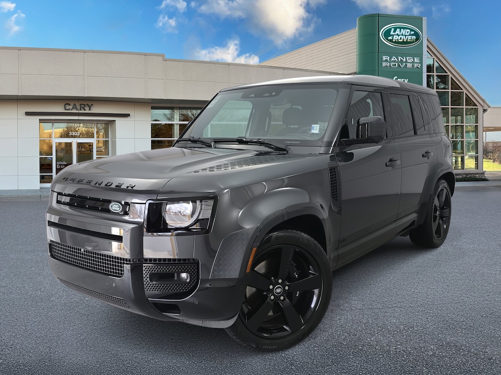 Certified. Carpathian Gray Metallic 2025 LAND ROVER Defender 110 V8 AWD 8-Speed Automatic V8 Supercharged Chequer Body Protection, Extended Black Exterior Pack, Wheels: 22" Gloss Black Style 5098.