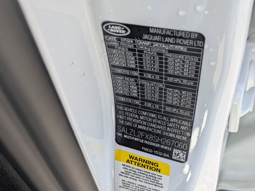 Priced below KBB Fair Purchase Price! Clean CARFAX. Certified. Fuji White 2025 LAND ROVER Range Rover Evoque Dynamic AWD 9-Speed Automatic 2.0L Turbocharged BACK UP CAMERA, LEATHER, HEATED SEATS, PANORAMIC SUNROOF, 4-WHEEL DRIVE, SMART KEY W PUSH BUTTON START, DYNAMIC RADAR CRUISE CONTROL, LANE DEPARTURE ALERT W STEERING ASSIST, BLIND SPOT MONITOR W REAR CROSS TRAFFIC ALERT, APPLE CARPLAY & ANDROID AUTO, POWER LIFTGATE, 2-ZONE CLIMATE CONTROL, 21" 5 SPLIT SPOKE WHEELS W GLOSS BLACK FINISH, HEATED 2ND ROW SEATS, TECHNOLOGY PACK, CLEAR SIGHT REARVIEW MIRROR, HEAD-UP DISPLAY, BLACK DESIGN PACK, NARVIK BLACK CONTRAST ROOF, DYNAMIC HANDLING PACK, SURROUND CAMERA W WADE SENSING, 1-OWNER, CLEAN CARFAX, MUST SEE!, 12 Speakers, 12-Way Heated Electric Front Seats w/Driver Memory, 3D Surround Camera, ABS brakes, Auto High-beam Headlights, Automatic temperature control, Cabin Air Purification Plus, Clearsight Interior Rear View Mirror, Comfort Package, Configurable Cabin Lighting, Electronic Stability Control, Exterior Parking Camera Rear, Four wheel independent suspension, Fully automatic headlights, Garage door transmitter: HomeLink, Head-Up Display, Illuminated entry, Memory seat, Navigation system: InControl Navigation Pro, Power Liftgate, Power moonroof, Power passenger seat, Rain sensing wipers, Solar Attenuating Windscreen, Steering wheel mounted audio controls, Technology Package, Traction control, Turn signal indicator mirrors, Two-Zone Climate Control.